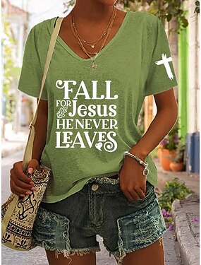 Mulheres Camiseta Imprimir Gráfico Letra Vintage à moda Clássico Manga Curta Decote V Tops regulares Diário Azul Preto Branco Laranja Verde Verão Primavera Outono