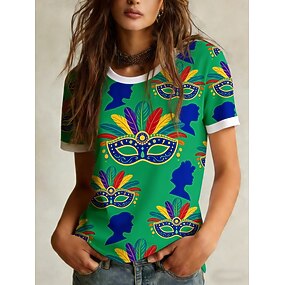Carnaval Mulheres Camiseta T-shirt Imprimir Gráfico à moda Clássico Casual Manga Curta Gola Redonda Tops regulares Diário Esportes Para Noite Verde Verão Primavera
