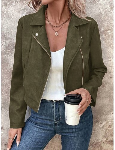 Mulheres Jaqueta casual Confortável Respirável Zíper Casual Tecido Férias Rua Casual Roupa Diária Zíper Curto Aberto para a Lateral Normal Manga Longa agasalhos Rosa Fúcsia Marron Primavera Outono