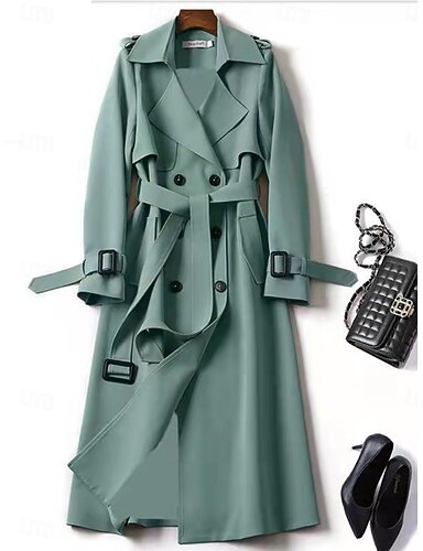 Mulheres Casaco impermeável Confortável Respirável Botões Com cinto Casual Tecido Férias Rua Casual Roupa Diária Não Trespassado Longo Aberto para a Lateral Normal Manga Longa agasalhos Azul marinho