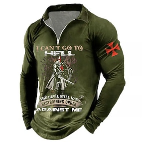 Homens Letra Estampas Abstratas Vintage Soldier Camiseta Polo Polo com zíper Camisa de golfe Manga Longa Camisa Aberto para a Lateral Ao ar livre Rua Preto Azul Marinha Marron Verde Zíper Imprimir
