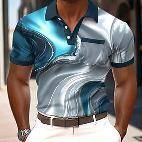 Homens Gráfico Camisas Polo Camisa de golfe Manga Curta Camisas polo Camisas de colarinho Business casual Roupa de Trabalho Traje formal Roupas para festivais Impressão 3D Botões Azul Verde Azulado