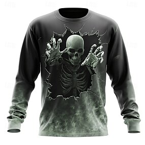 Camiseta Masculina 3D Esqueleto Manga Longa Camiseta Impressão 3D Camisa de Gola Redonda Moda Exagerada Casual de Rua Diária Primavera Outono Roupas de Vestuário