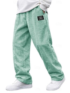Homens Calças de linho Calças Calça verão Calças largas Calça casual Com Cordão Cintura elástica Perna reta Tecido Conforto Respirável Comprimento total Casual Diário Ao ar livre Férias Moda Preto