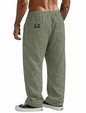 Homens Calças de linho Calças Calça verão Bolsos Tecido Conforto Respirável Ao ar livre Diário Para Noite Misto de Algodão e Linho Moda Roupa de rua Preto Verde