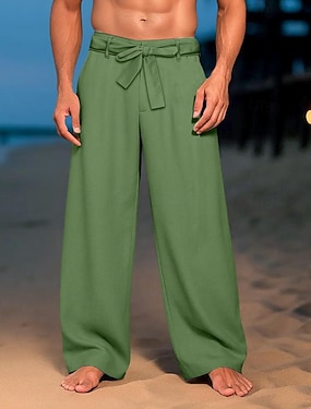 Homens Calças de linho Calças Calça verão Calças largas Calças de praia Com Cordão Cintura elástica Côr Sólida Leve Respirável Comprimento total Diário Ao ar livre Praia Férias Moda Verde Cáqui