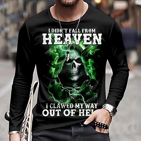 Camiseta Masculina 3D Esqueleto Camiseta de Manga Longa Estampagem 3D Camisa Gola Redonda Moda Exagerada Casual Diário Verão Primavera Outono Roupas