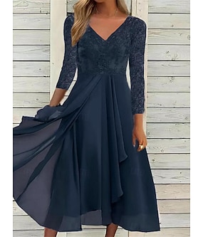Mulheres Vestido midi Vestido de renda Vestido casual Vestido Swing Vestido De Tule Roupa de rua Casual Férias Rua Feriado Normal Manga 3/4 Decote V Azul Verde Verão