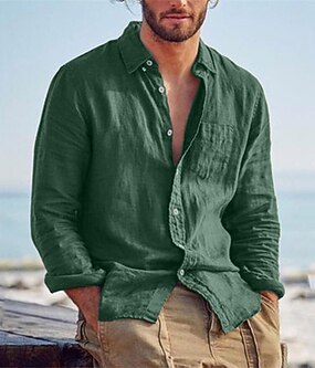 Homens Camisa Social Camisa de linho camisa de verão Roupa de Praia camisa de botão Côr Sólida Férias Curise Preto Branco Rosa Azul Marinha Manga Longa Colarinho Primavera Verão Roupa Botão para baixo