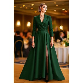 Vestido smoking Linha A Formal Convidado do casamento Kentucky Derby Cetim Elástico Elegante Estilo Celebridade Manga 3/4 plissada Longo Lapela Chanfrada Trespassado