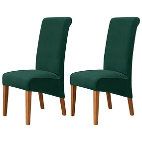 Capa para cadeira de jantar de veludo 2 peças, capa elástica para assento de cadeira, elastano, com protetor de fundo elástico alto para jantar, cerimônia de casamento, lavável