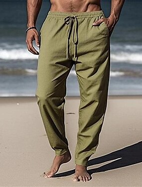Homens Calças de linho Calças Calça verão Calças de praia Bolsos Com Cordão Cintura elástica Tecido Conforto Respirável Diário Feriado Férias Havaiana Boho Branco Verde