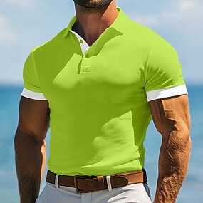 Homens Textura Camisa de golfe Casual Trabalho gola pólo com nervuras Clássico Manga Curta Básico Moderno Bloco de cor Estriado Verão Primavera Verão Fino Azul Branco Amarelo Verde Cinzento Textura