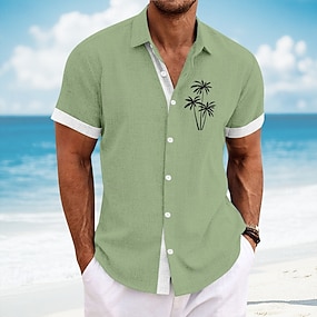 Homens Coqueiro Camisa casual Camisa havaiana Camiseta Aloha Manga Curta Havaiana Recorrer Casual Verão Primavera Aberto para a Lateral Abotoar Rosa Azul Verde Cinzento