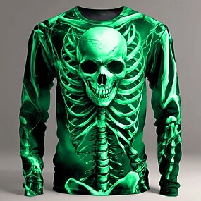Camiseta Masculina 3D Esqueleto Camiseta de Manga Longa Estampagem 3D Camisa Gola Redonda Moda Exagerada Casual Diário Verão Primavera Outono Roupas