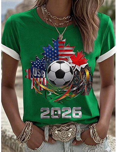 Mulheres Camiseta Imprimir Gráfico à moda Clássico Casual Manga Curta Gola Redonda Tops regulares Casual Diário Esportes Azul Preto Branco Rosa Vermelho Verão Primavera
