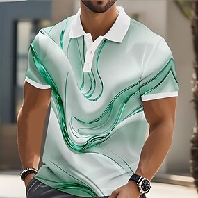 Homens Geométrica Linha Pólo Manga Curta Camisas polo Lapela Business casual Roupa Esportiva Botões Verão Verde