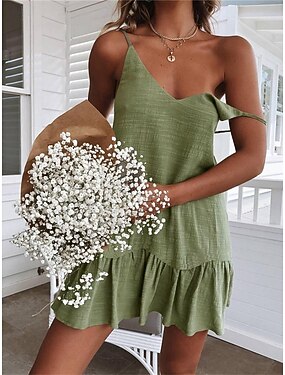 Mulheres Vestido midi Linho de algodão sintético Vestido de linho de algodão Moderno Ao ar livre Feriado Para Noite Ajuste Largo Tecido Manga Curta Decote V Verde Claro Rosa Verde Cáqui Verão