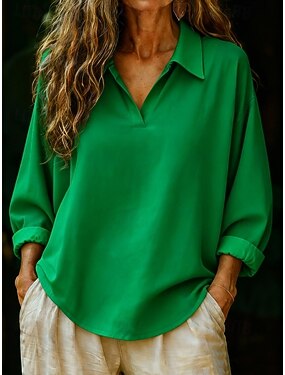 Mulheres Camisa Social Blusa Camisa de algodão Côr Sólida à moda Clássico Moderno Manga Longa Decote V Tops regulares Diário Feriado Para Noite Branco Amarelo Rosa Azul Céu Verde Verão Primavera