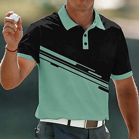 Homens Geométrico Golf Camisas Polo Esportivas Manga Curta Camisas polo Camisas de colarinho Casual Roupa Esportiva Botões Primavera Verão Azul Preto Roxo