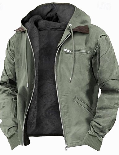Homens Moletom Full Zip Hoodie Linha Sherpa Verde Tropa Azul Marron Cinzento Com Capuz Tecido Bolsos Desportos e Ar livre Diário Feriado Poliéster Vintage Roupa de rua Casual Outono & inverno Roupa