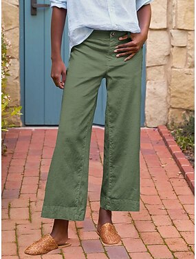 Mulheres Linho de algodão sintético Perna larga Calça casual Calça verão Férias Roupa de rua Básico Comprimento total Cintura Média Tecido Bolsos Respirabilidade Confortável Sem Elasticidade Diário