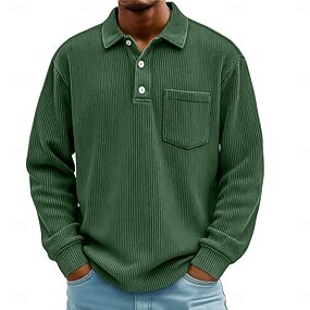 Homens Camiseta de Veludo Camisas Polo Casual Esportes Lapela Manga Longa Moda Básico Bloco de cor Patchwork Botões Outono Primavera & Outono Normal Preto Verde Azul Claro Azul Marinho cáqui Camiseta