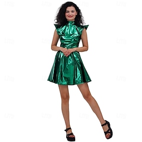 Metálico Anos 80 Patente Látex Brilhante minivestido Discoteca Fantasia Mulheres Fantasia de Carnaval Dia Das Bruxas Carnaval Baile de Máscaras Festa / Noite Parada do Orgulho Mês do Orgulho Adulto
