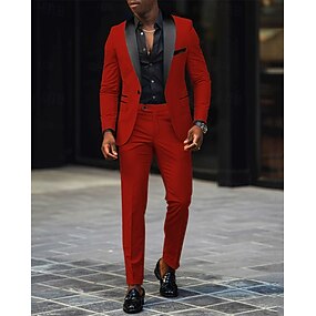 Homens Blazer + Calça Social Blazer Fato O negócio Coquetel Festa de Casamento 2 Peças Moda Casual Primavera Outono Poliéster Bloco de cor Bolsos Botões Confortável Não Trespassado Jaqueta esporte