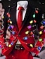 Natal Homens Padrão de natal Jaqueta Blazer Casaco Confortável Respirável Artistíco Casual Traje de festa para noite Diário Festival Impressão 3D Botões Outono & inverno Entalhe Manga Longa Vermelho