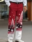 Natal Homens Papai Noel Floco de Neve Fantasia de Natal Calças Social Calças de Terno Cintura Média Casual Ao ar livre Feriado Calças retas com bolsos Primavera Outono Inverno Impressão 3D Vermelho