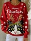 Mulheres Moletom Gráfico Gato Árvore de Natal Casual Manga Longa Gola Redonda Tops regulares Rua Dia a Dia Casual Vinho Vermelho Outono Inverno