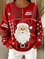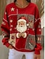 Moletom Pullover de Natal para Mulheres Gráfico Papai Noel Casual Manga Longa Gola Redonda Tops Regulares Vestuário de Rua Diários Casual Retalhos Vermelho Outono Inverno
