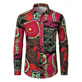 Retro Vintage Boho Anos 70 Camisa camisas havaianas Hippie Tribal Étnico Padrão Africano Fantasia Homens Dia Das Bruxas Carnaval Festival de Música férias na praia Festa Temática Retro Adulto Camisa