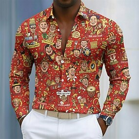 Carnaval Homens Colorido Camisa Social camisa de botão Manga Longa Casual Carnaval Roupa Diária Outono & inverno Aberto para a Lateral Imprimir Botão para baixo Vermelho Verde