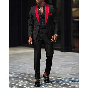 Homens Blazer + Calça Social Blazer Fato O negócio Coquetel Festa de Casamento 2 Peças Moda Casual Primavera Outono Poliéster Bloco de cor Bolsos Botões Confortável Não Trespassado Jaqueta esporte