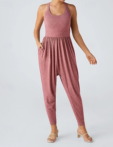 Mulheres Normal Macacão Ativo Côr Sólida Sem Manga Perna larga Decote Redondo Bolsos Diário Férias Normal Preto Vermelho Cáqui Verão