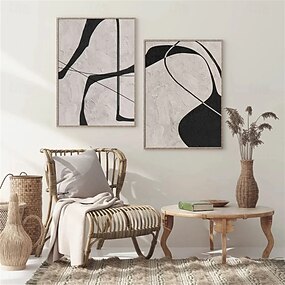Pintura a óleo feita à mão em tela, decoração de parede, arte abstrata em preto e branco, textura para decoração de casa, pintura enrolada, sem moldura, não esticada