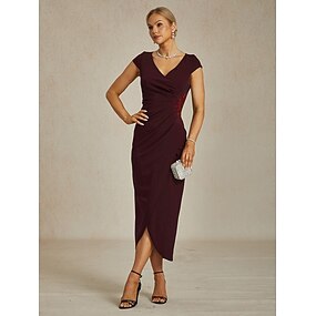 Mulheres Vestido Longo Vestido Envelope Vestido A Line Elegante Formal Convidado do casamento Coquetel Normal Tecido Manga Curta Decote V Vinho Verão