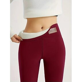 Mulheres leggings forradas de lã Leggings Ativo Férias Moda Comprimento total Cintura Alta Respirabilidade Macio Confortável Com Stretch Vinho Azul marinho Preto Cinzento Primavera Outono Inverno