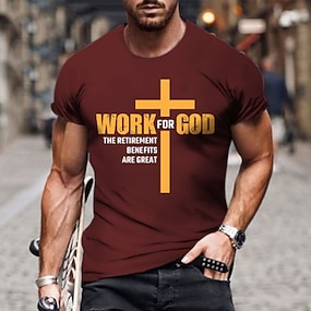 Camiseta Gráfica Masculina Casual de Manga Curta com Design de Cruz de Unhas Beijes de Fé