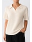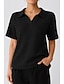 Mulheres Camiseta Waffle T-shirt Ilhó Côr Sólida Elegante Moda Casual Manga Curta Decote V Colarinho de Camisa Tops regulares Diário Para Noite Roupas de férias Preto Branco Cáqui Verão Primavera
