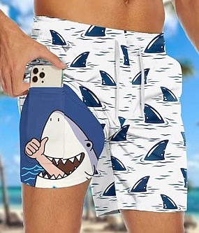 Homens Tubarão Engraçado Criaturas marinhas Shorts Forrados Shorts de Natação 2 em 1 Shorts de Natação Cintura Média Havaiana Férias Roupa de Praia Bolsos laterais Com forro de compressão Cintura