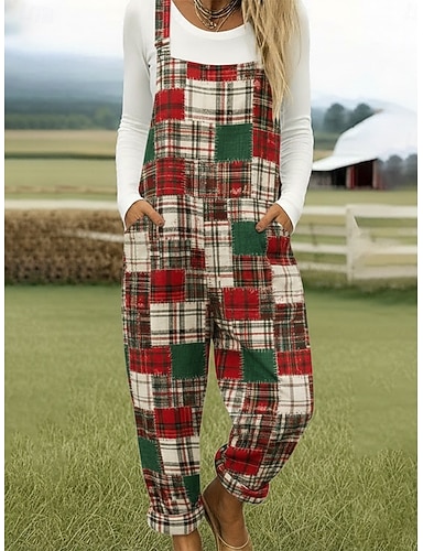 Womens Dungarees 100% Algodão Ativo Gráfico Sem Mangas Reto Decote Quadrado Com Bolso Férias Diário Ajuste Solto Branco Azul Verde Verão
