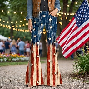 250º Aniversário EUA Retro Vintage Anos 70 Calças Calça boca de sino Hippie Discoteca Cintura Alta Fantasia Mulheres Baile de Máscaras 4 de julho Festa Dia da Independência Adulto Calças