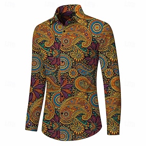 Retro Vintage Anos 70 Camisa Camisa Aloha Manga Comprida Hippie Estampado Cashemere Fantasia Homens Baile de Máscaras Festival de Música Festa Roupa Diária Adulto Camisa