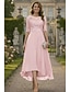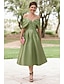 Linha A Longuette Vestido de festa Vestido Coquetel Vestido de convidada de casamento Vestido Para Mãe dos Noivos Manga Curta Ombro a Ombro Elegante Formal Coquetel Semi formal Cetim com Pregas