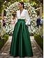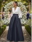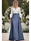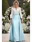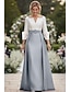 Linha A Longo Camisetão Vestido de convidada de casamento Vestido formal Vestido Para Mãe dos Noivos Meia Manga Lapela Elegante Casamento Formal Convidado do casamento Cetim Elástico com Laço(s