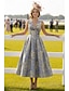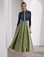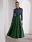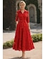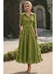 Linha A Longuette Vestido de festa Vestido Coquetel Vestido de convidada de casamento Vestidos de noite Elegante Vintage Manga 3/4 Colarinho de Camisa Casamento Formal Jacquard com Bolsos