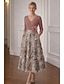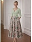 Linha A Até o Tornozelo Longuette Vestido de festa Vestido Coquetel Vestido de convidada de casamento Vestido Para Mãe dos Noivos Manga 3/4 Decote V Elegante Vintage Formal Coquetel Kentucky Derby
